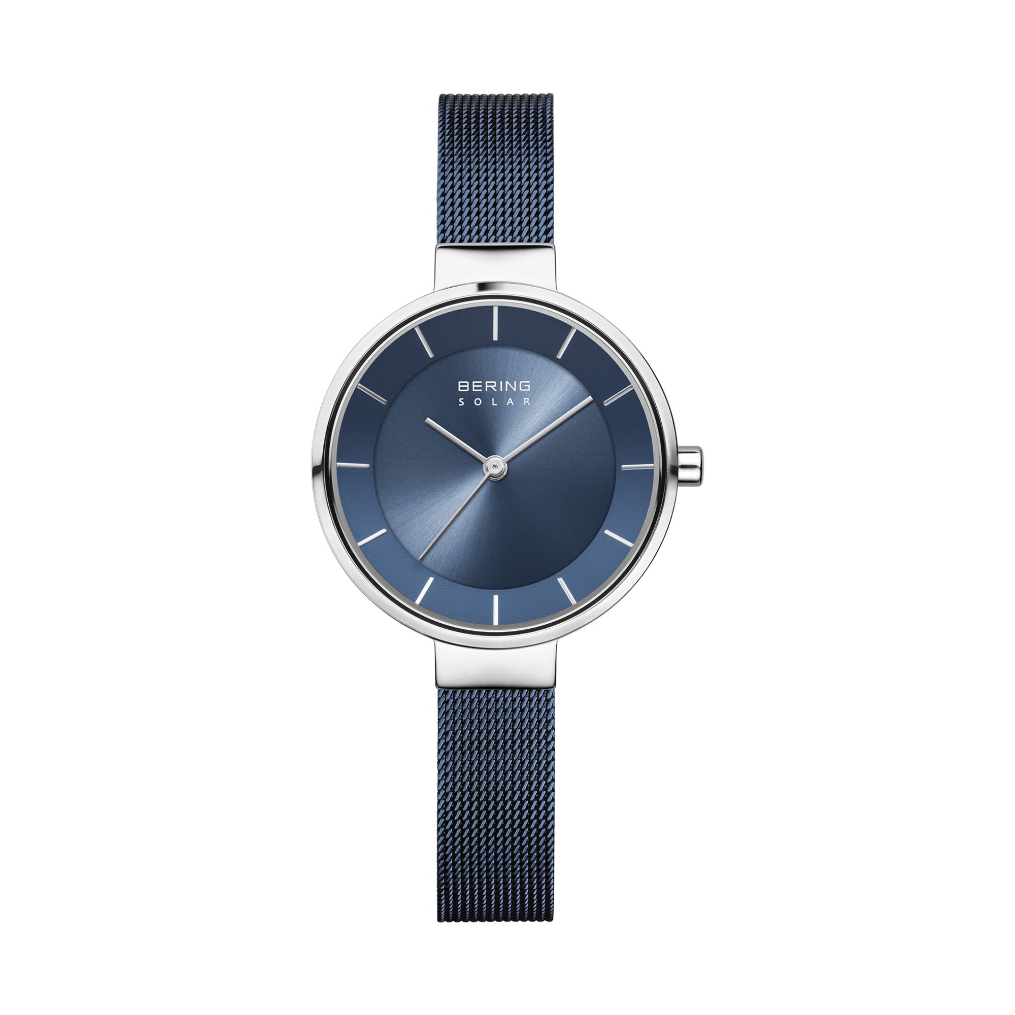 Bering Solar 31mm Silver Blue Milanese Strap Watch
